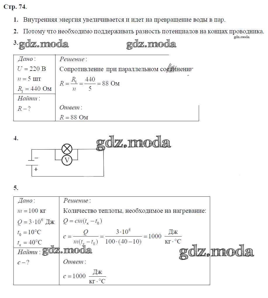 ГДЗ решение к заданию № 74 Физика 8 класс тетрадь-экзаменатор Жумаев В.В. Просвещение 2012 ФГОС бесплатно на гдз.мода!