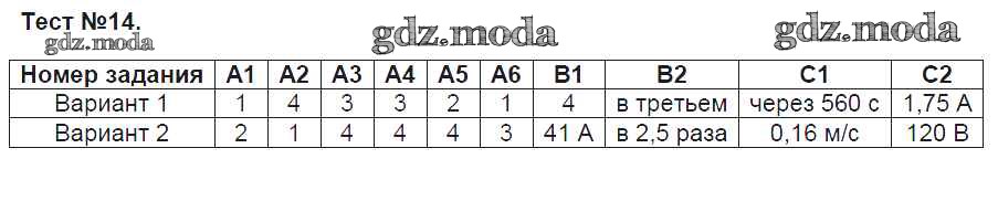 ОТВЕТ на задание № 14 Контрольно-измерительные материалы (КИМ) по Физике 8 класс Зорин