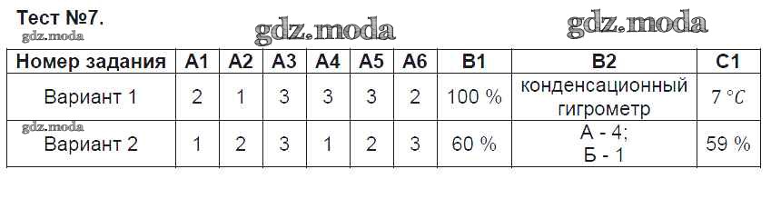 ГДЗ решение к заданию № 7 Физика 8 класс контрольно-измерительные материалы (КИМ) Зорин Н.И. ВАКО 2017 ФГОС бесплатно на гдз.мода!
