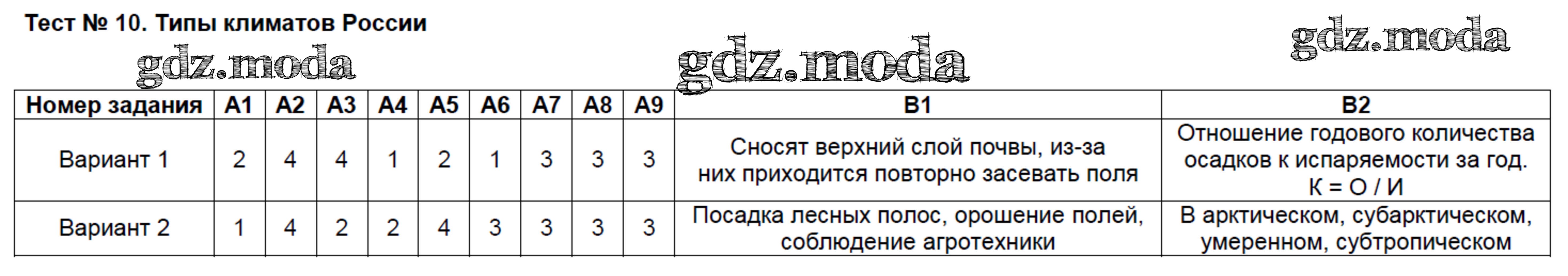 ГДЗ решение к заданию № 10 География 8 класс КИМ Жижина Е.А. ВАКО 2018 ФГОС бесплатно на гдз.мода!