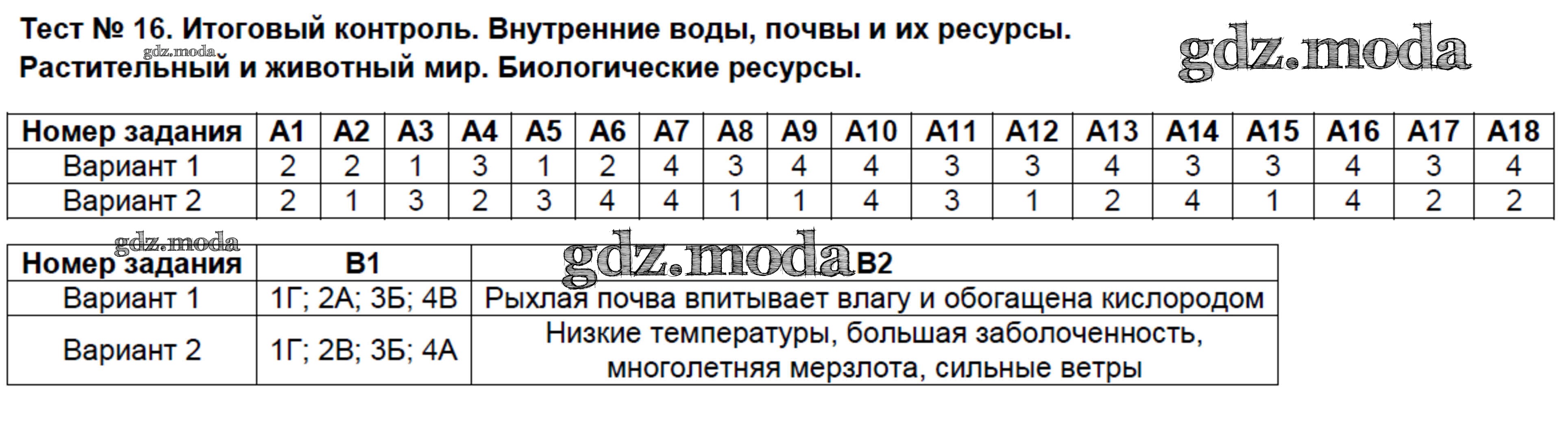 ГДЗ решение к заданию № 16 География 8 класс КИМ Жижина Е.А. ВАКО 2018 ФГОС бесплатно на гдз.мода!