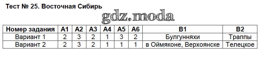 ГДЗ решение к заданию № 25 География 8 класс КИМ Жижина Е.А. ВАКО 2018 ФГОС бесплатно на гдз.мода!