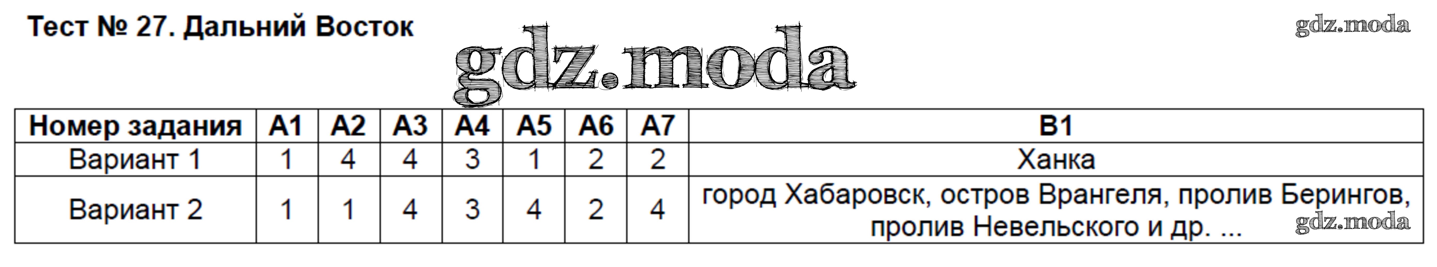 ГДЗ решение к заданию № 27 География 8 класс КИМ Жижина Е.А. ВАКО 2018 ФГОС бесплатно на гдз.мода!