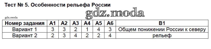 ГДЗ решение к заданию № 5 География 8 класс КИМ Жижина Е.А. ВАКО 2018 ФГОС бесплатно на гдз.мода!
