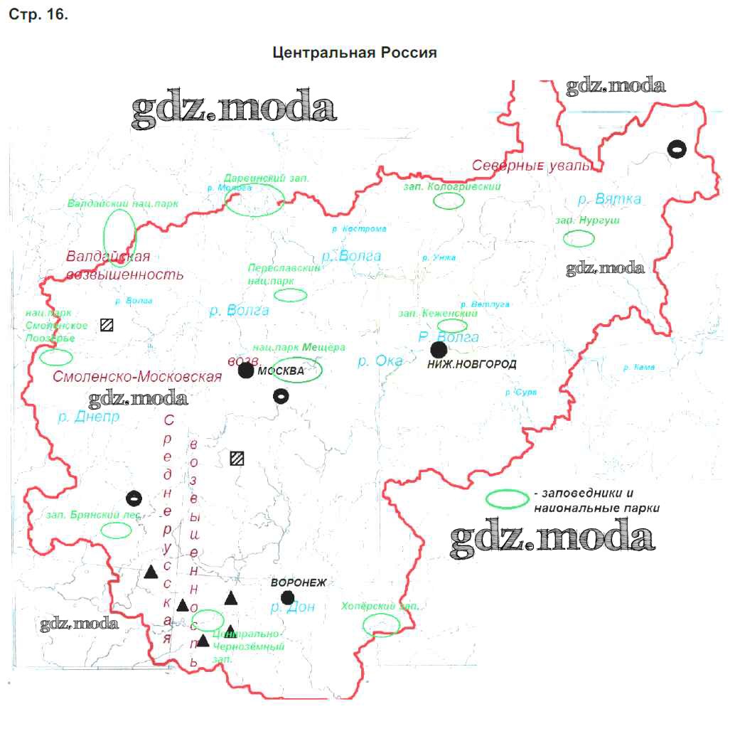 ГДЗ решение к заданию № 16 География 8 класс контурные карты Новотоцких О. А Дрофа 2020 ФГОС бесплатно на гдз.мода!