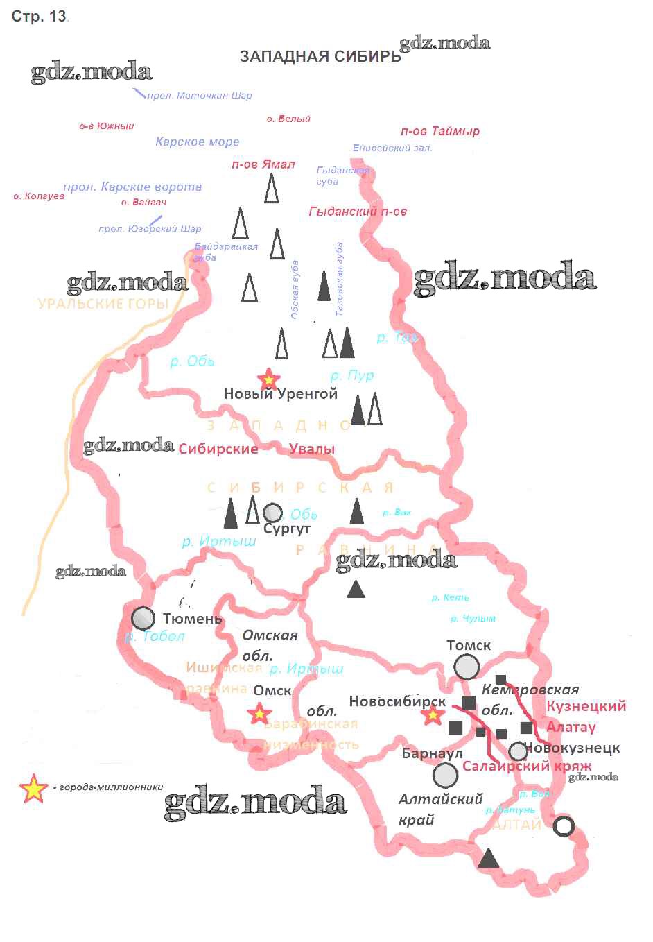 ГДЗ решение к заданию № 13 География 8 класс контурные карты Приваловский А.Н. Дрофа 2019 Часть 1, Часть 2 ФГОС бесплатно на гдз.мода!