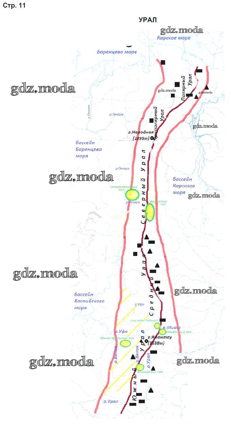 ГДЗ решение к заданию № 11 География 8 класс контурные карты с заданиями Раковская Э.М. АСТ-Пресс 2020 ФГОС бесплатно на гдз.мода!