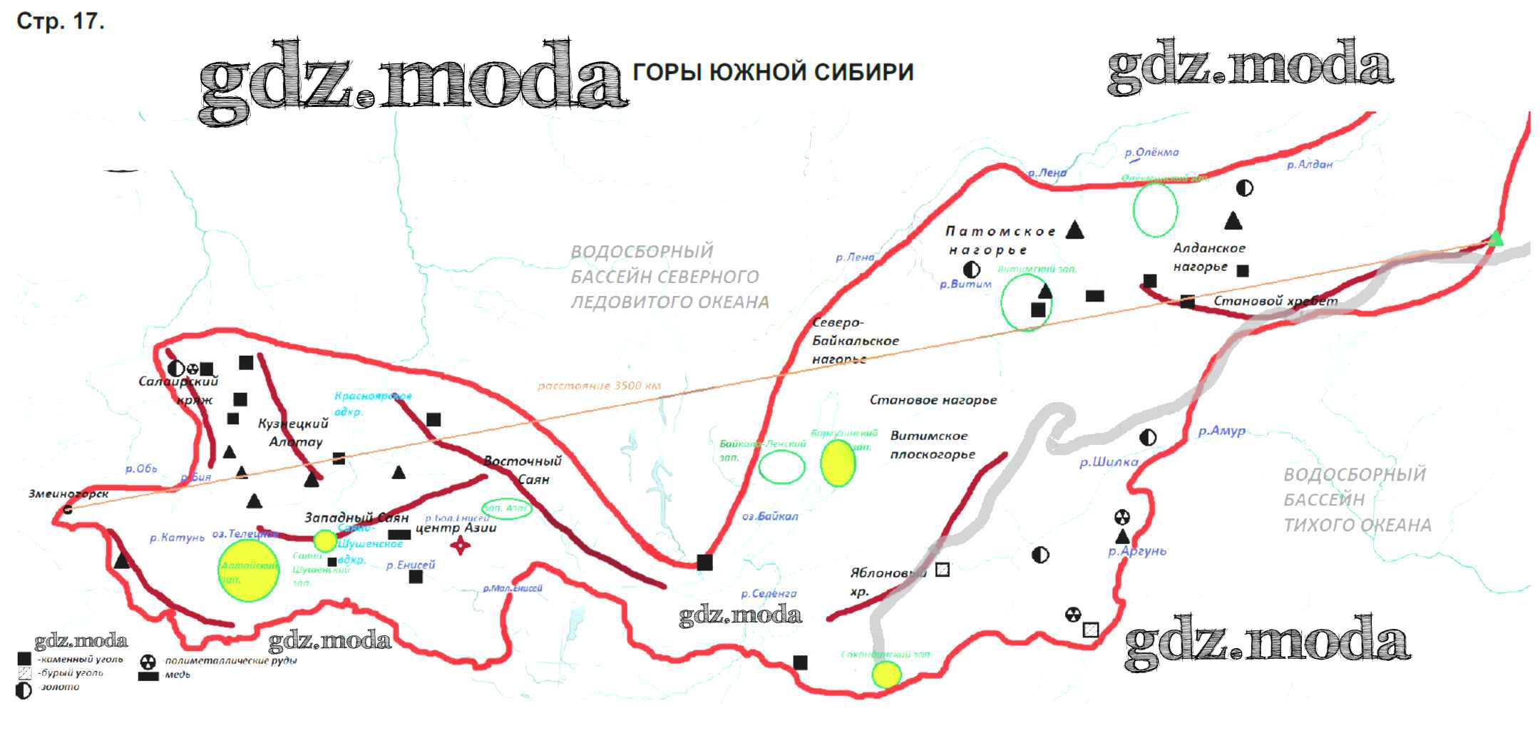 ГДЗ решение к заданию № 17 География 8 класс контурные карты с заданиями Раковская Э.М. АСТ-Пресс 2020 ФГОС бесплатно на гдз.мода!
