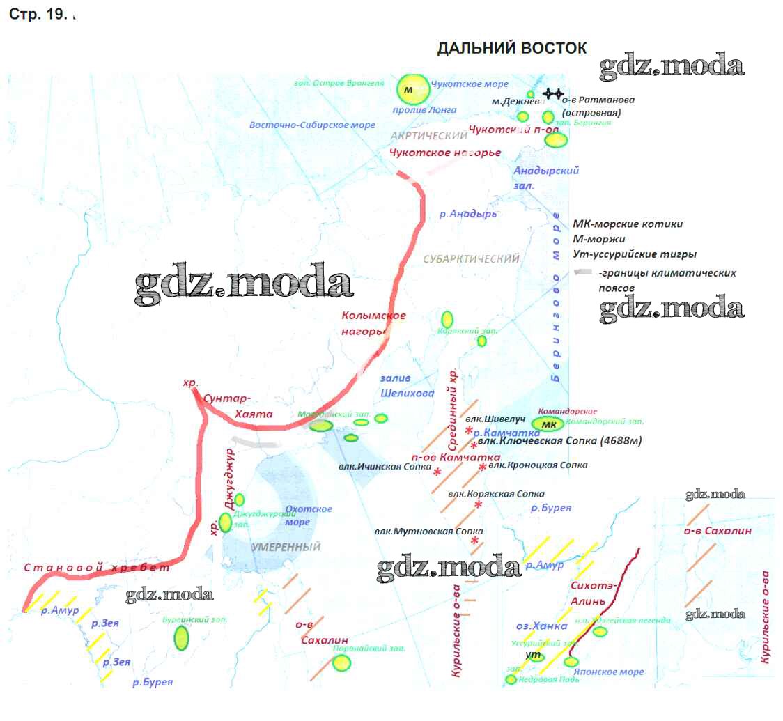 ГДЗ решение к заданию № 19 География 8 класс контурные карты с заданиями Раковская Э.М. АСТ-Пресс 2020 ФГОС бесплатно на гдз.мода!