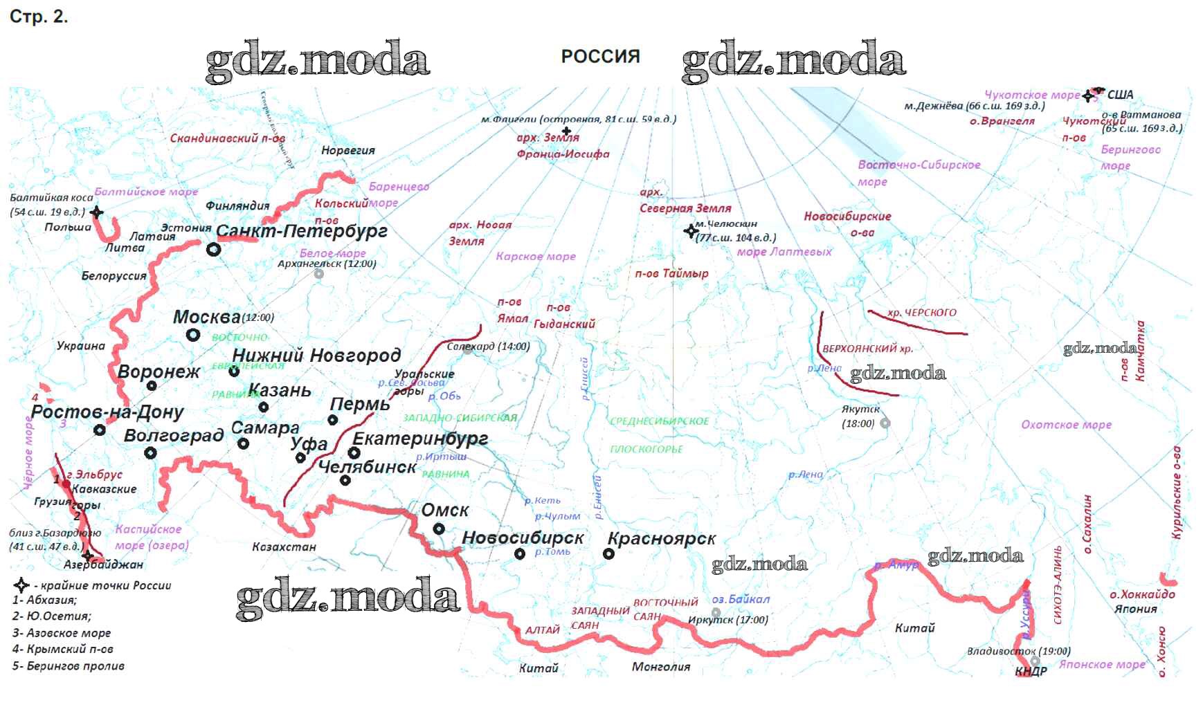 ГДЗ решение к заданию № 2 География 8 класс контурные карты с заданиями Раковская Э.М. АСТ-Пресс 2020 ФГОС бесплатно на гдз.мода!