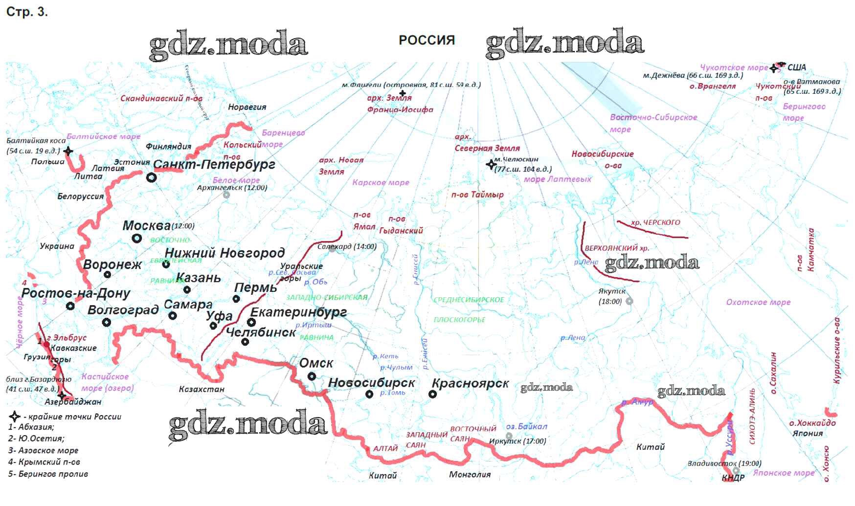 ГДЗ решение к заданию № 3 География 8 класс контурные карты с заданиями Раковская Э.М. АСТ-Пресс 2020 ФГОС бесплатно на гдз.мода!