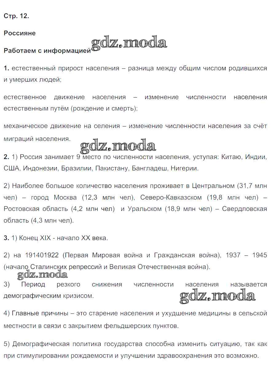 ГДЗ решение к заданию № 12 География 8 класс мой тренажёр Николина В.В. Просвещение 2016 ФГОС бесплатно на гдз.мода!