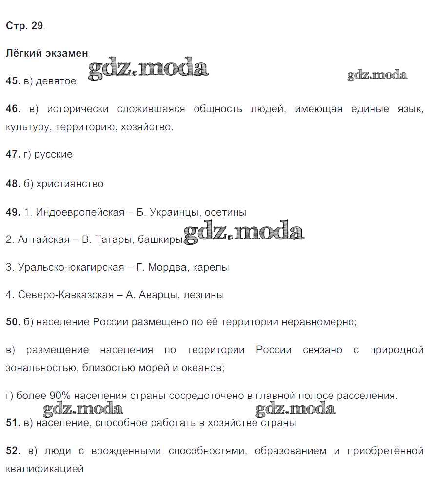 ГДЗ решение к заданию № 29 География 8 класс мой тренажёр Николина В.В. Просвещение 2016 ФГОС бесплатно на гдз.мода!