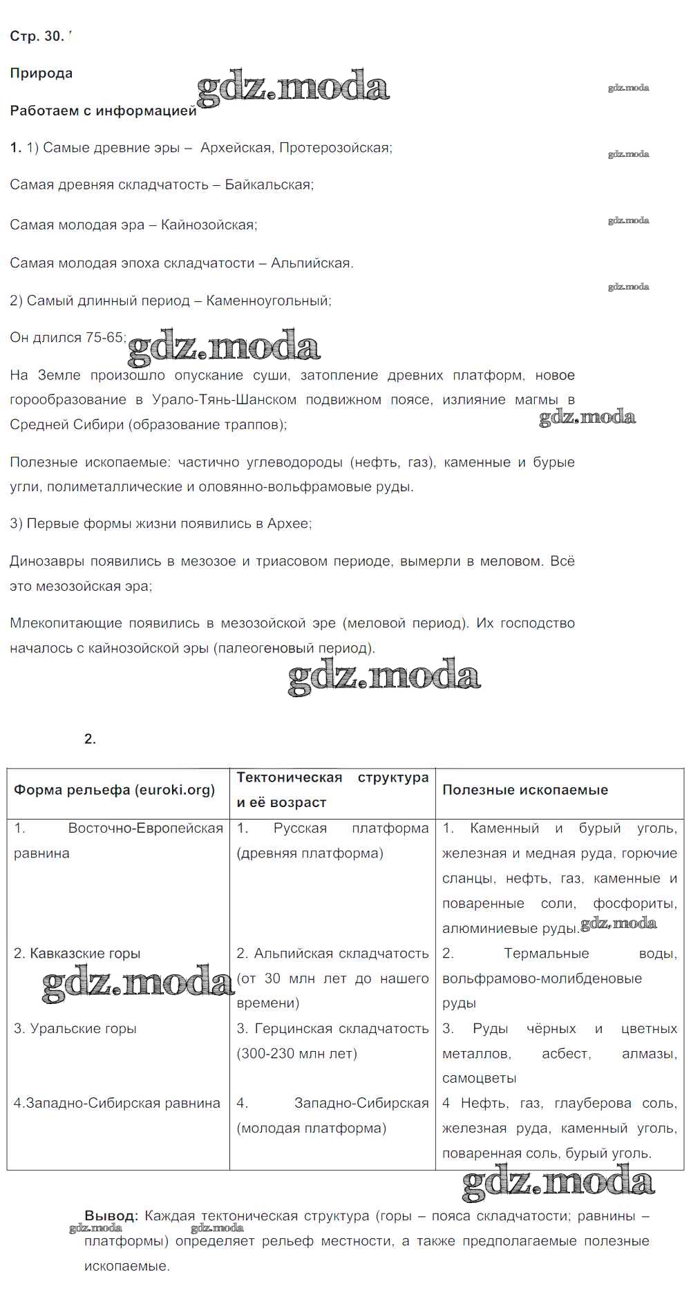 ГДЗ решение к заданию № 30 География 8 класс мой тренажёр Николина В.В. Просвещение 2016 ФГОС бесплатно на гдз.мода!