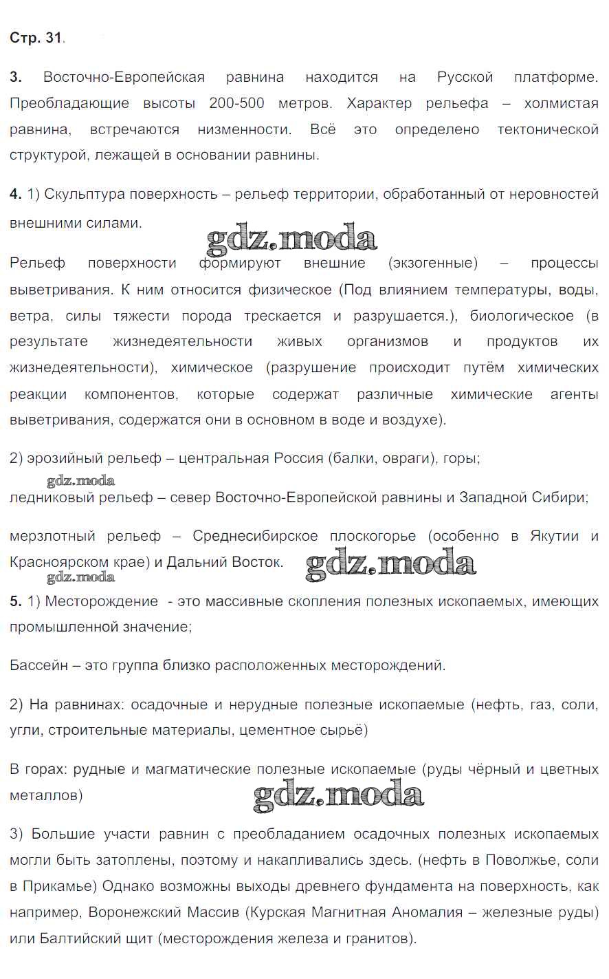 ГДЗ решение к заданию № 31 География 8 класс мой тренажёр Николина В.В. Просвещение 2016 ФГОС бесплатно на гдз.мода!