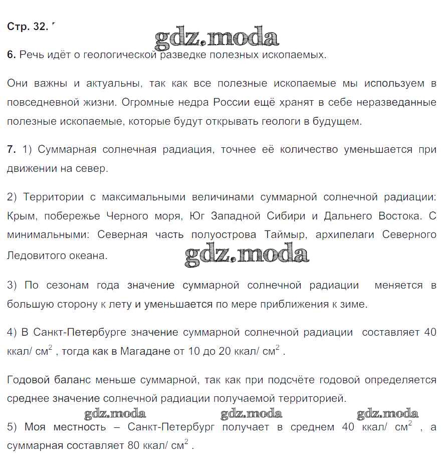 ГДЗ решение к заданию № 32 География 8 класс мой тренажёр Николина В.В. Просвещение 2016 ФГОС бесплатно на гдз.мода!