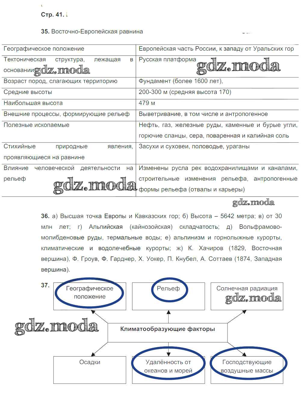 ГДЗ решение к заданию № 41 География 8 класс мой тренажёр Николина В.В. Просвещение 2016 ФГОС бесплатно на гдз.мода!