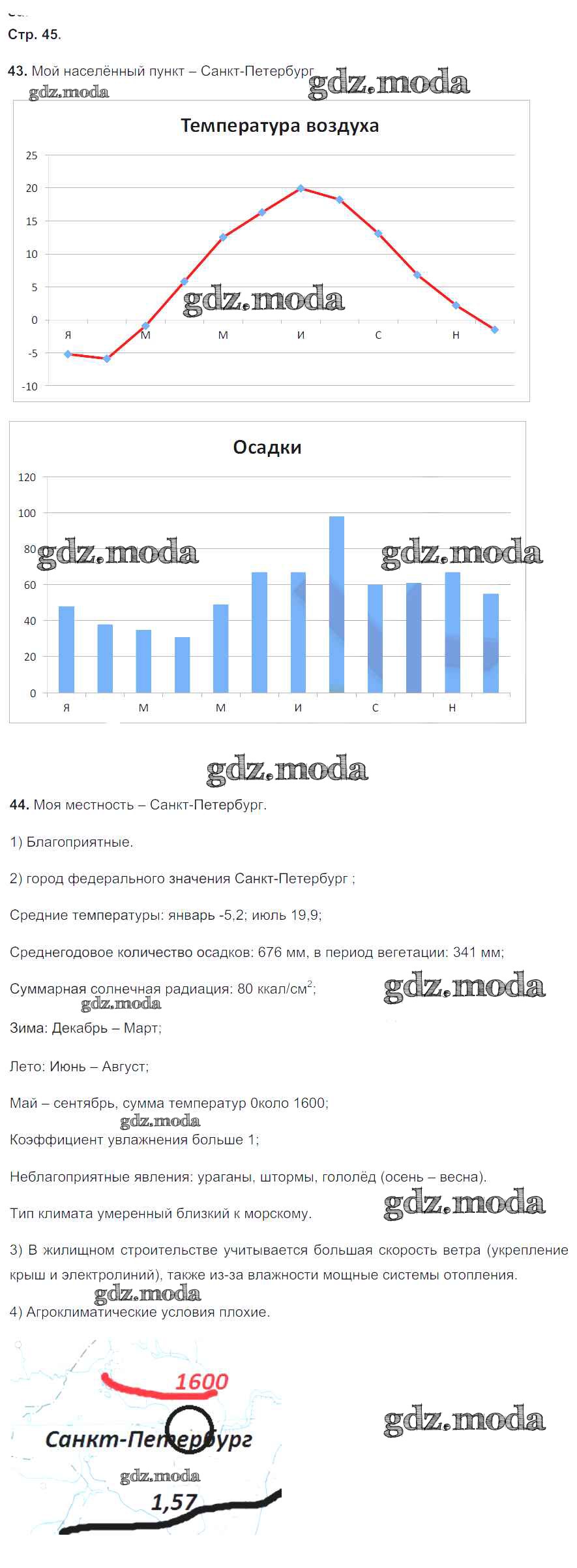 ГДЗ решение к заданию № 45 География 8 класс мой тренажёр Николина В.В. Просвещение 2016 ФГОС бесплатно на гдз.мода!