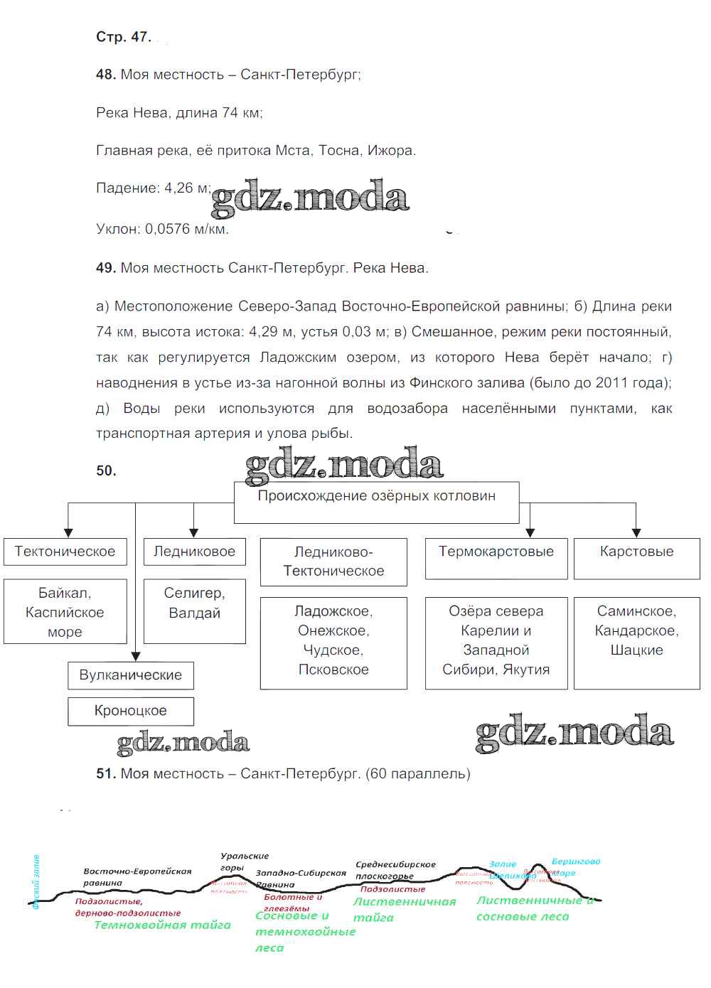 ГДЗ решение к заданию № 47 География 8 класс мой тренажёр Николина В.В. Просвещение 2016 ФГОС бесплатно на гдз.мода!