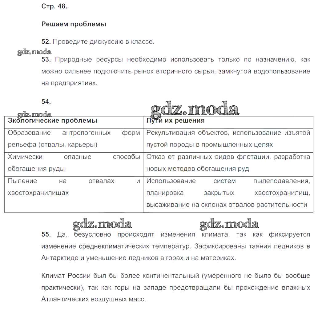 ГДЗ решение к заданию № 48 География 8 класс мой тренажёр Николина В.В. Просвещение 2016 ФГОС бесплатно на гдз.мода!