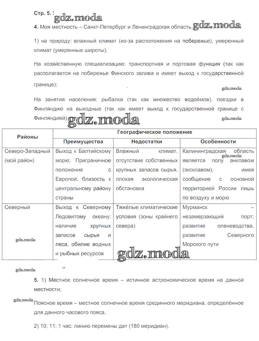 ГДЗ решение к заданию № 5 География 8 класс мой тренажёр Николина В.В. Просвещение 2016 ФГОС бесплатно на гдз.мода!