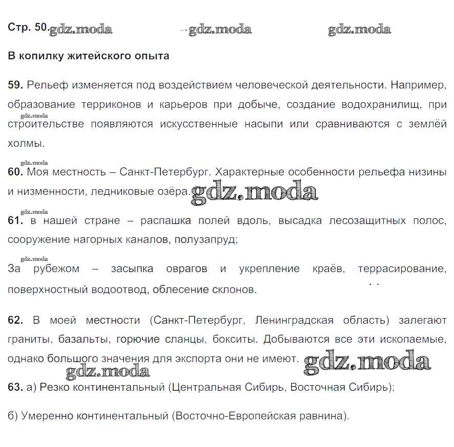 ГДЗ решение к заданию № 50 География 8 класс мой тренажёр Николина В.В. Просвещение 2016 ФГОС бесплатно на гдз.мода!