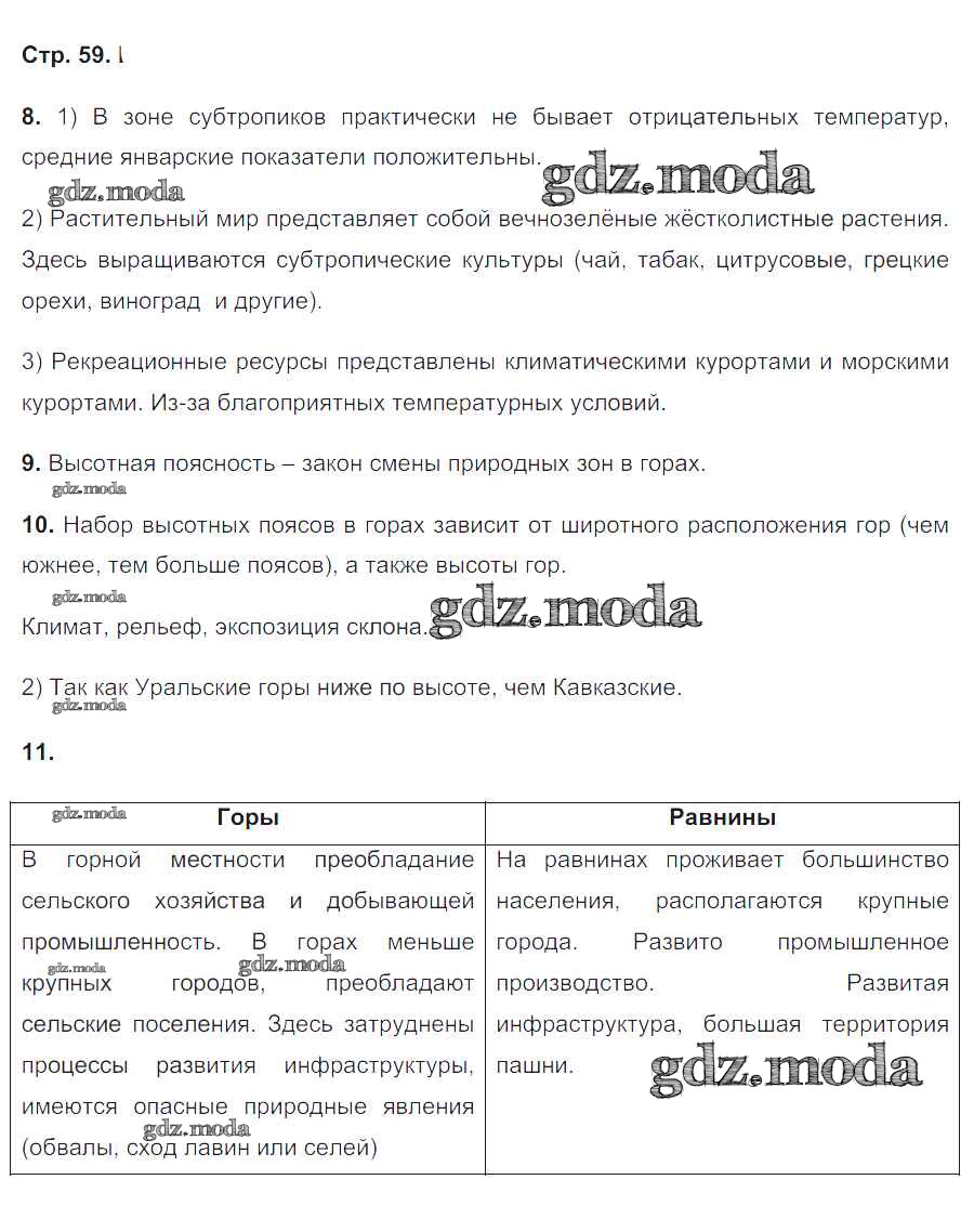 ГДЗ решение к заданию № 59 География 8 класс мой тренажёр Николина В.В. Просвещение 2016 ФГОС бесплатно на гдз.мода!