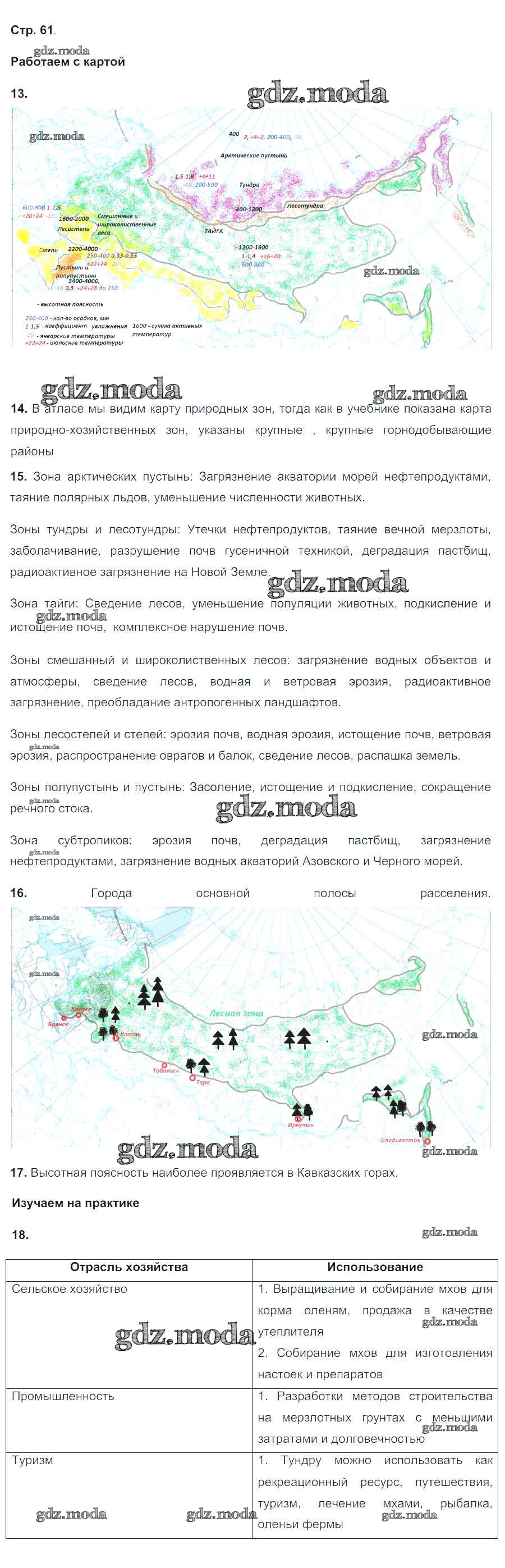 ГДЗ решение к заданию № 61 География 8 класс мой тренажёр Николина В.В. Просвещение 2016 ФГОС бесплатно на гдз.мода!