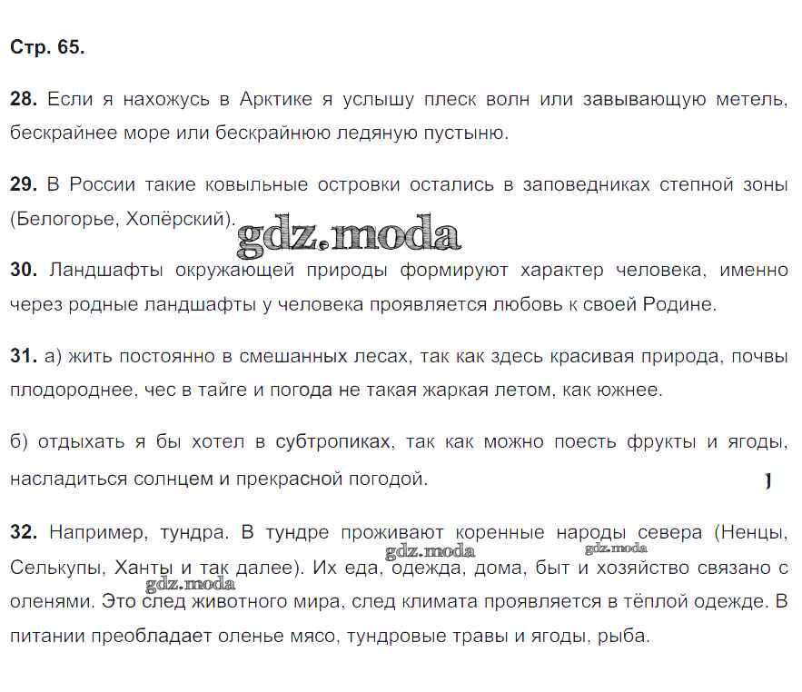 ГДЗ решение к заданию № 65 География 8 класс мой тренажёр Николина В.В. Просвещение 2016 ФГОС бесплатно на гдз.мода!