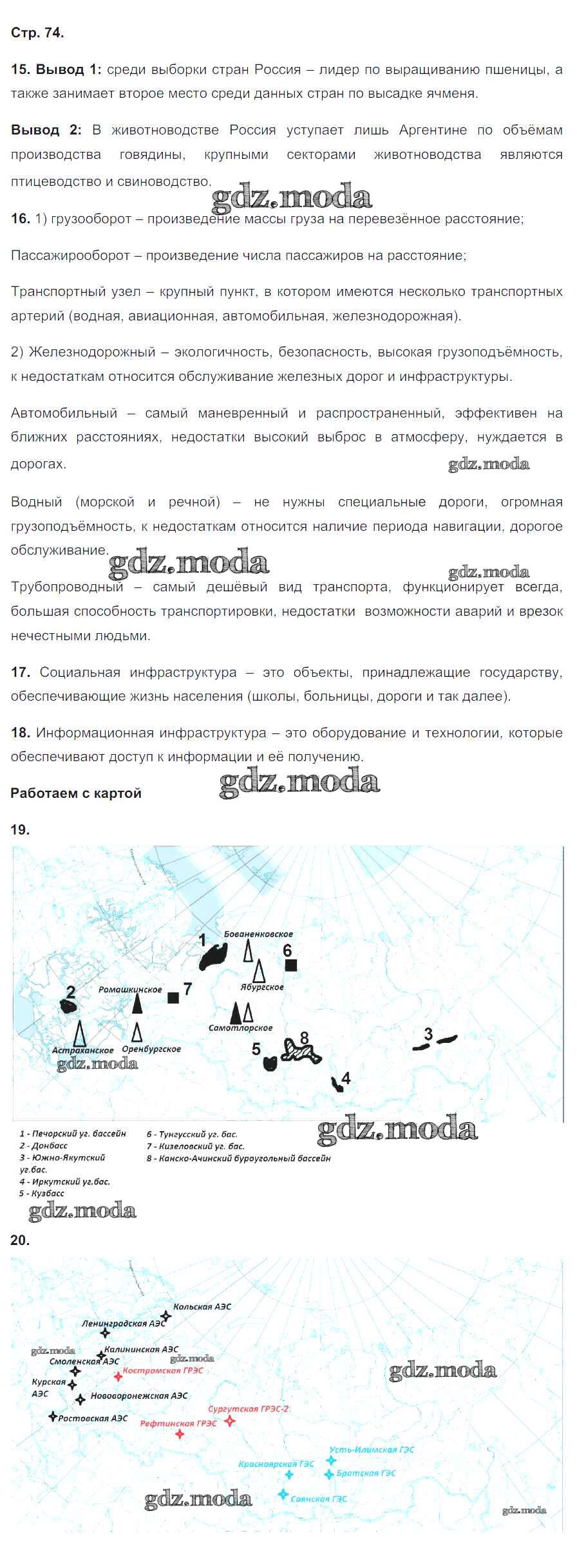 ГДЗ решение к заданию № 74 География 8 класс мой тренажёр Николина В.В. Просвещение 2016 ФГОС бесплатно на гдз.мода!