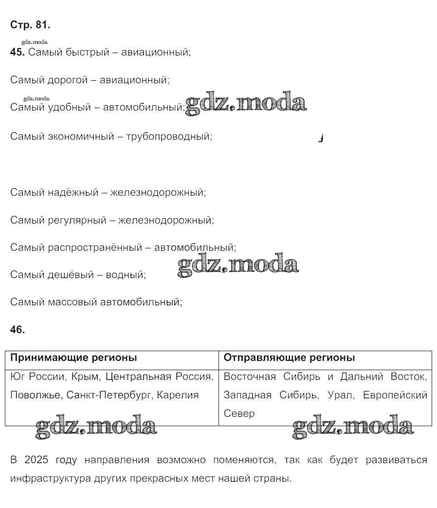 ГДЗ решение к заданию № 81 География 8 класс мой тренажёр Николина В.В. Просвещение 2016 ФГОС бесплатно на гдз.мода!