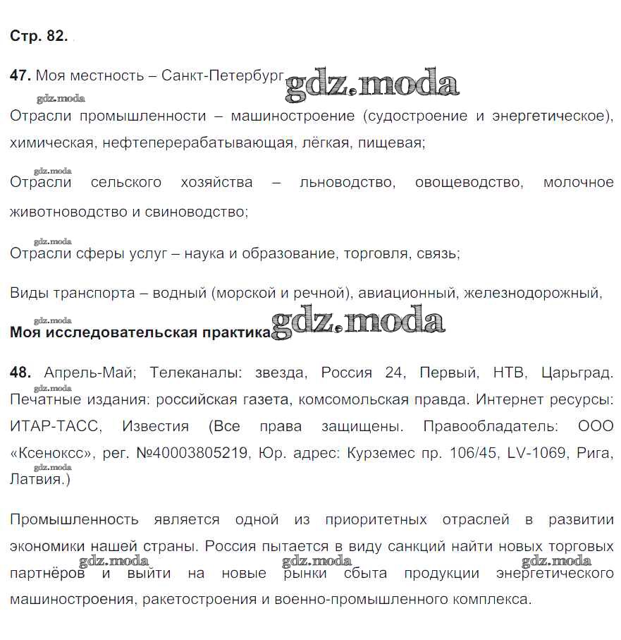 ГДЗ решение к заданию № 82 География 8 класс мой тренажёр Николина В.В. Просвещение 2016 ФГОС бесплатно на гдз.мода!