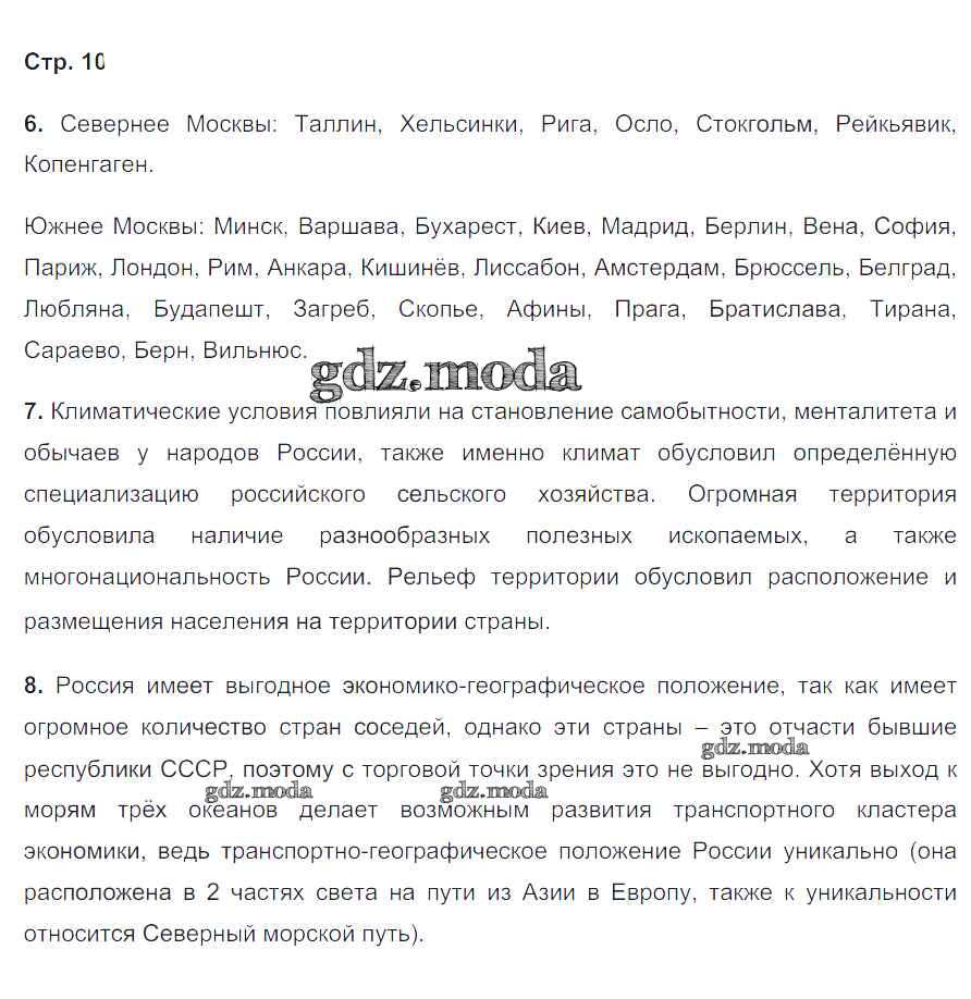 ОТВЕТ на задание № 10 Рабочая тетрадь по Географии 8 класс Баринова УМК