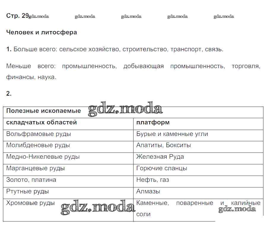 ОТВЕТ на задание № 29 Рабочая тетрадь по Географии 8 класс Баринова УМК