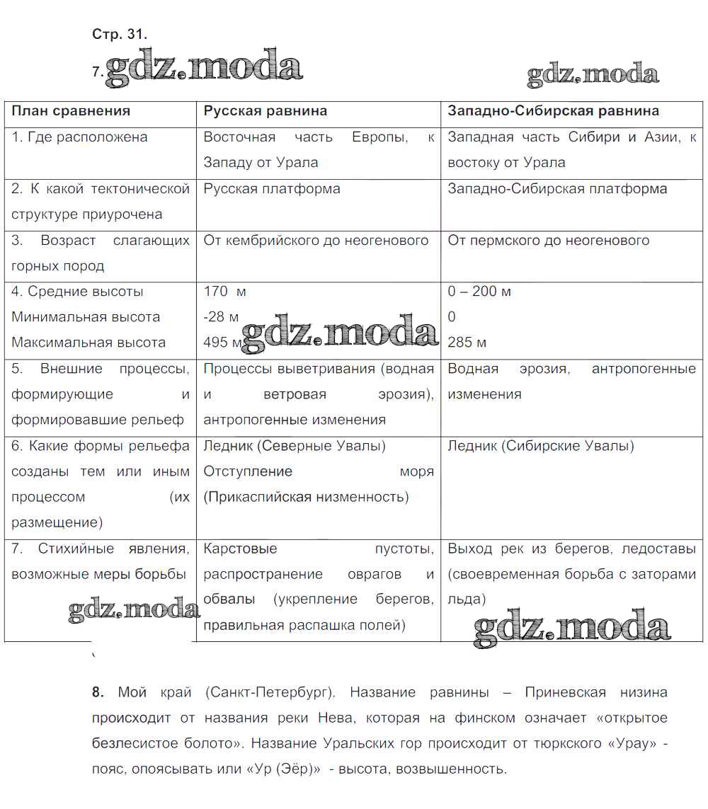 ОТВЕТ на задание № 31 Рабочая тетрадь по Географии 8 класс Баринова УМК