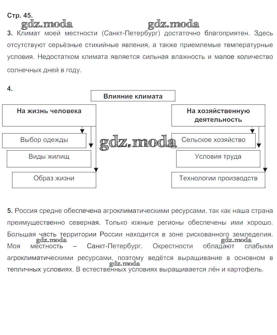 ГДЗ решение к заданию № 45 География 8 класс рабочая тетрадь Природа Баринова И.И. Дрофа 2017 ФГОС бесплатно на гдз.мода!