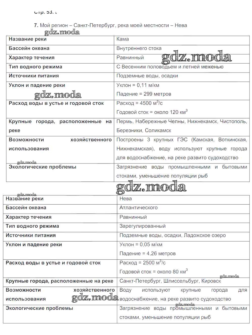 ГДЗ решение к заданию № 53 География 8 класс рабочая тетрадь Природа Баринова И.И. Дрофа 2017 ФГОС бесплатно на гдз.мода!
