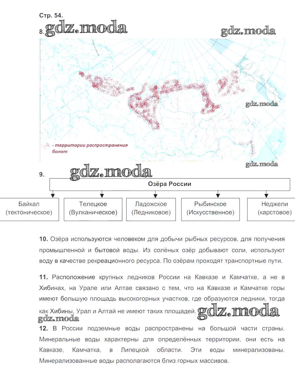 ГДЗ решение к заданию № 54 География 8 класс рабочая тетрадь Природа Баринова И.И. Дрофа 2017 ФГОС бесплатно на гдз.мода!