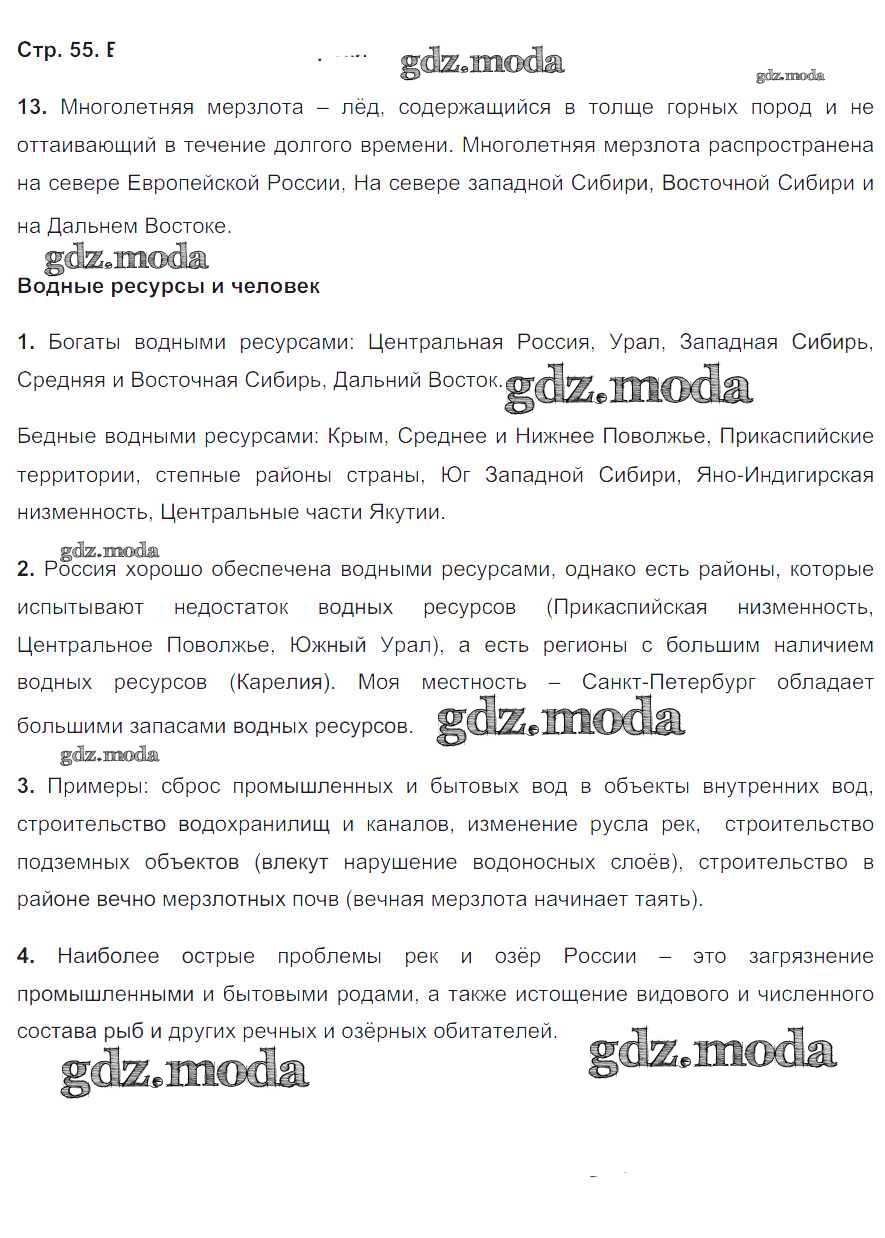 ГДЗ решение к заданию № 55 География 8 класс рабочая тетрадь Природа Баринова И.И. Дрофа 2017 ФГОС бесплатно на гдз.мода!