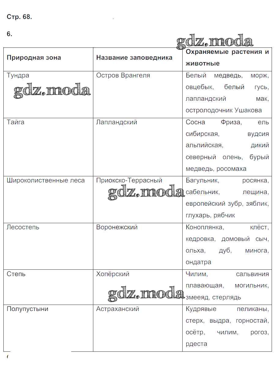 ГДЗ решение к заданию № 68 География 8 класс рабочая тетрадь Природа Баринова И.И. Дрофа 2017 ФГОС бесплатно на гдз.мода!
