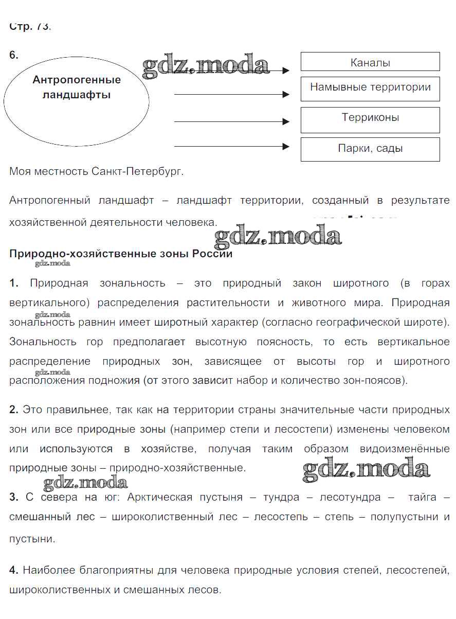 ГДЗ решение к заданию № 73 География 8 класс рабочая тетрадь Природа Баринова И.И. Дрофа 2017 ФГОС бесплатно на гдз.мода!