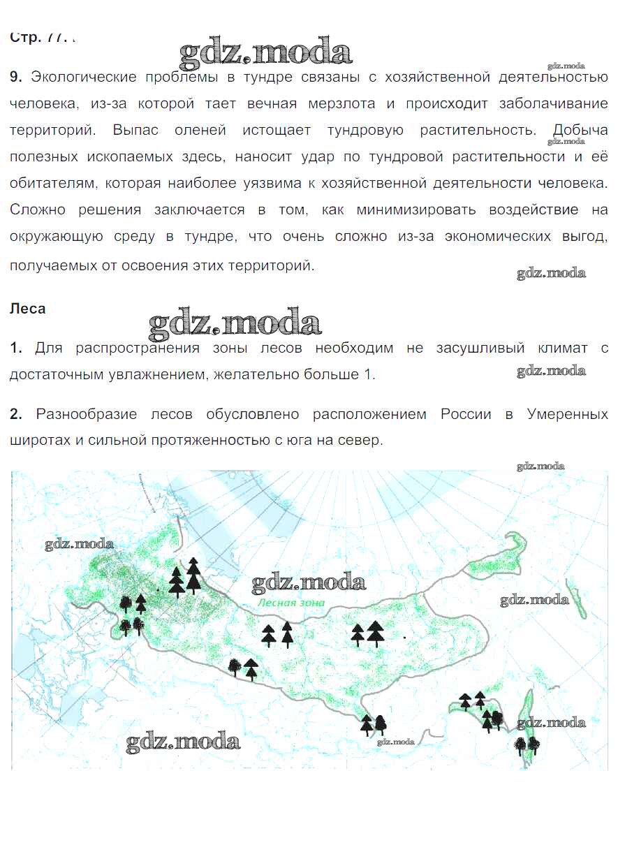 ГДЗ решение к заданию № 77 География 8 класс рабочая тетрадь Природа Баринова И.И. Дрофа 2017 ФГОС бесплатно на гдз.мода!