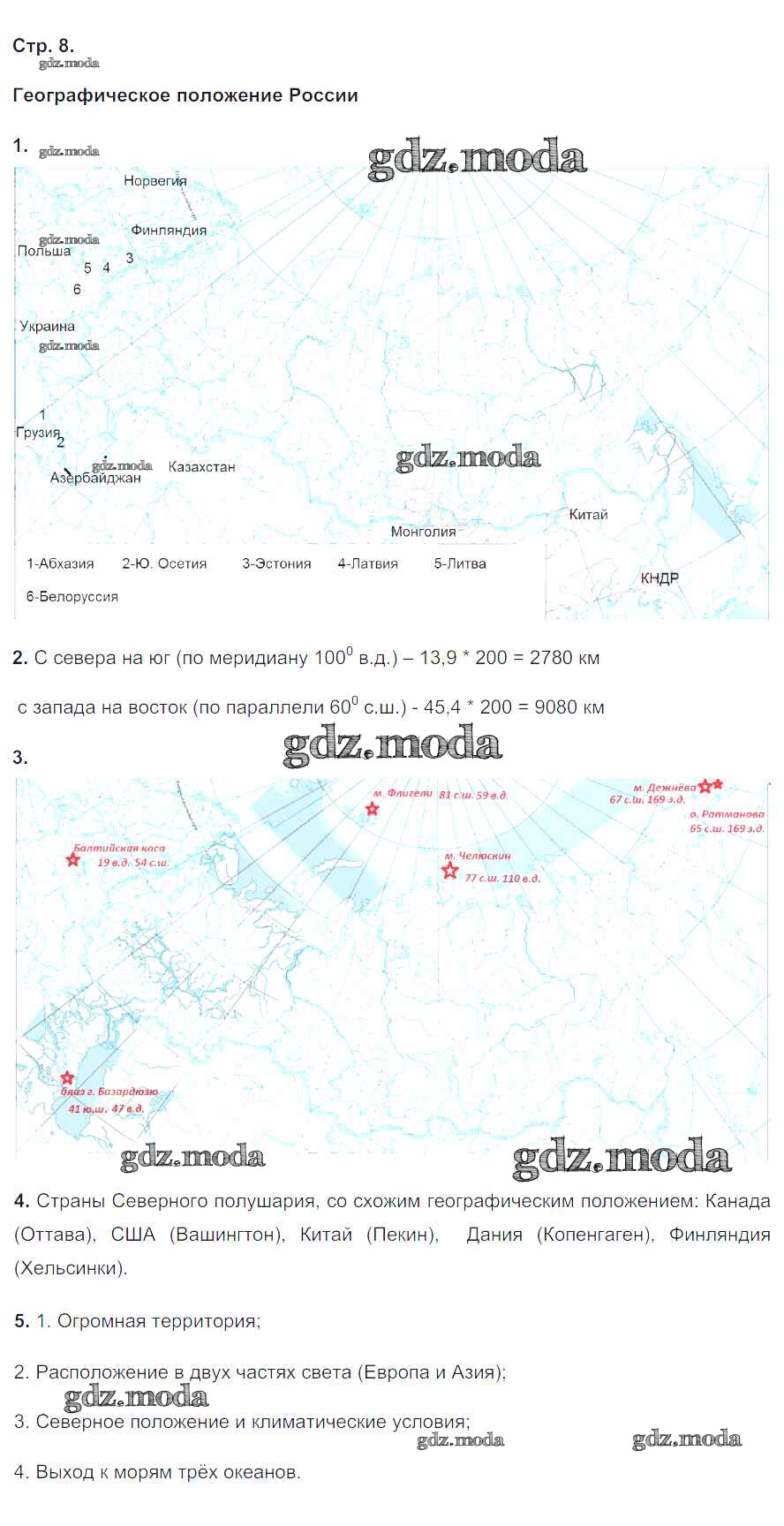 ГДЗ решение к заданию № 8 География 8 класс рабочая тетрадь Природа Баринова И.И. Дрофа 2017 ФГОС бесплатно на гдз.мода!