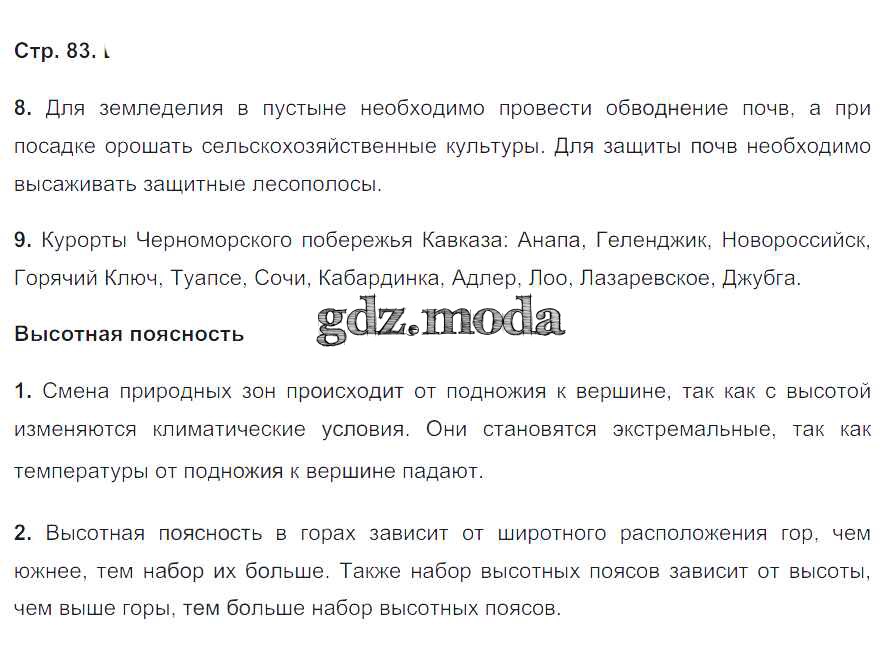 ГДЗ решение к заданию № 83 География 8 класс рабочая тетрадь Природа Баринова И.И. Дрофа 2017 ФГОС бесплатно на гдз.мода!