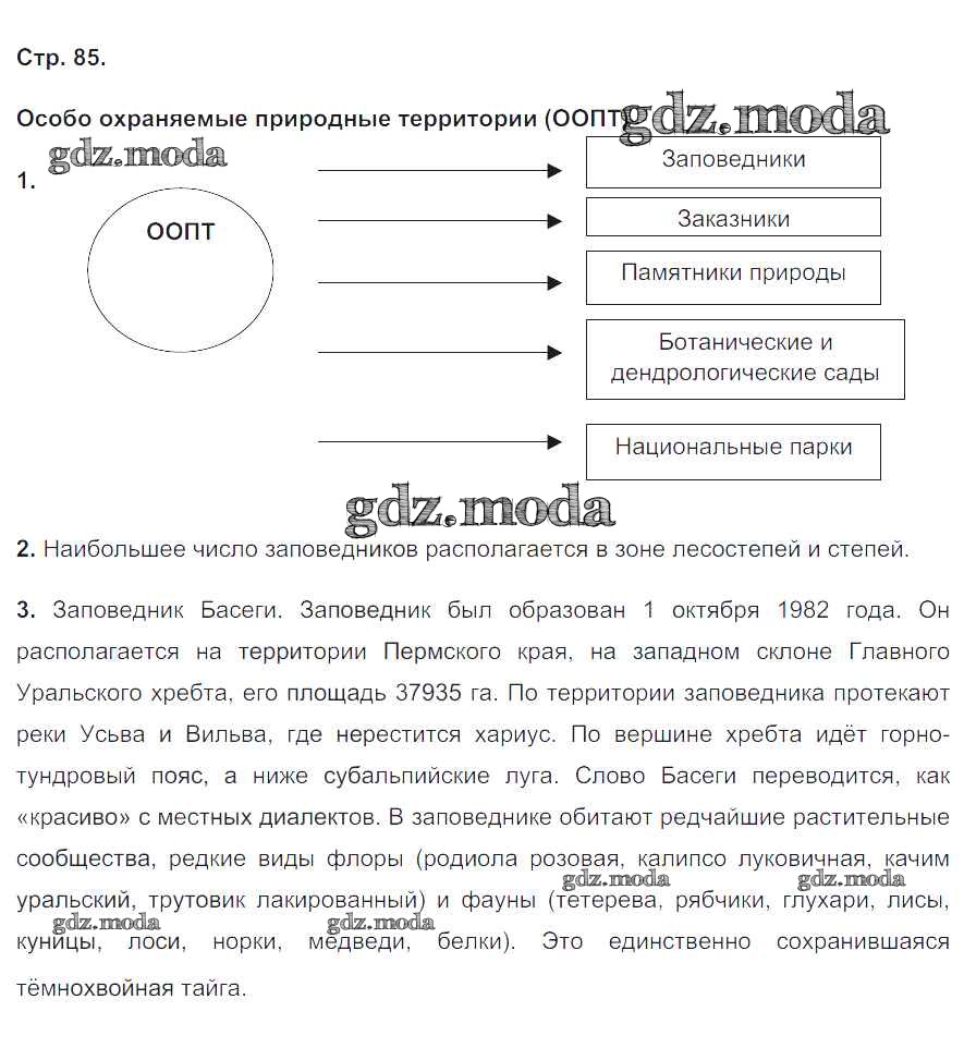 ГДЗ решение к заданию № 85 География 8 класс рабочая тетрадь Природа Баринова И.И. Дрофа 2017 ФГОС бесплатно на гдз.мода!