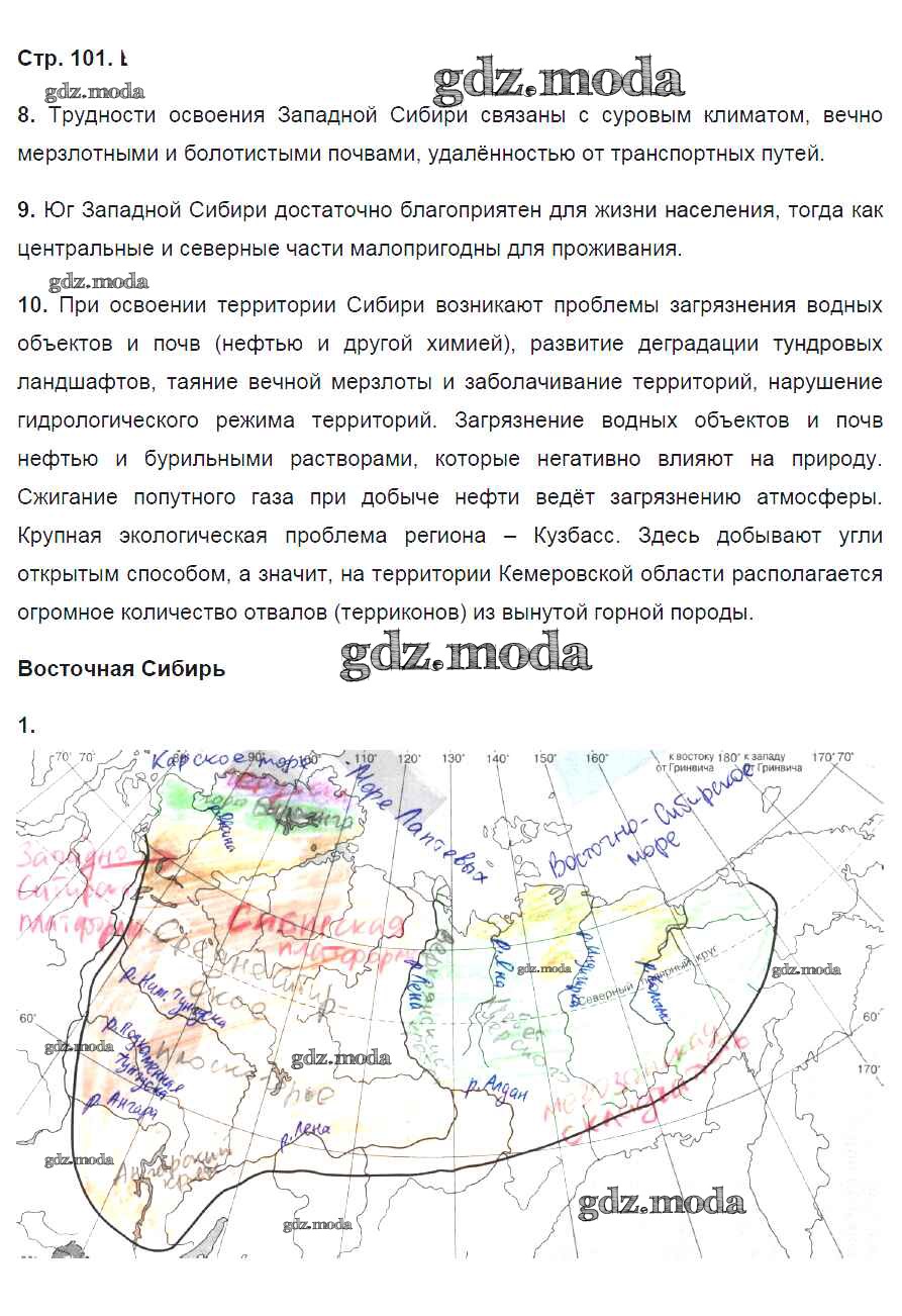 ГДЗ решение к заданию № 101 География 8 класс рабочая тетрадь География России Баринова И.И. Дрофа 2018 ФГОС бесплатно на гдз.мода!
