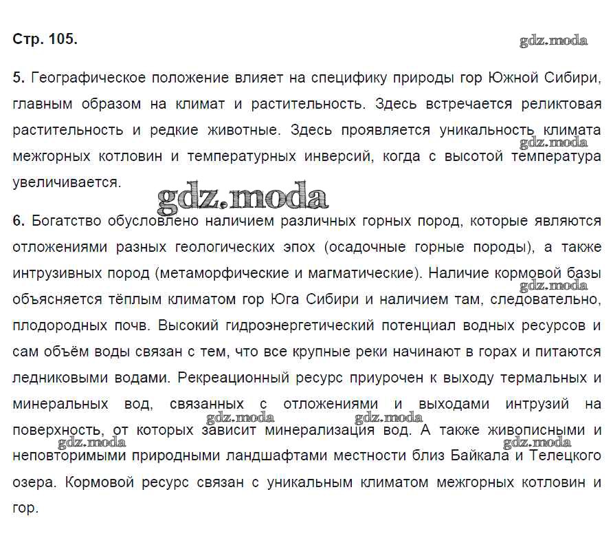 ГДЗ решение к заданию № 105 География 8 класс рабочая тетрадь География России Баринова И.И. Дрофа 2018 ФГОС бесплатно на гдз.мода!