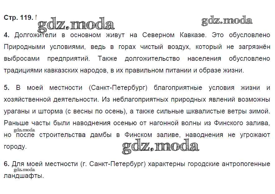 ГДЗ решение к заданию № 119 География 8 класс рабочая тетрадь География России Баринова И.И. Дрофа 2018 ФГОС бесплатно на гдз.мода!