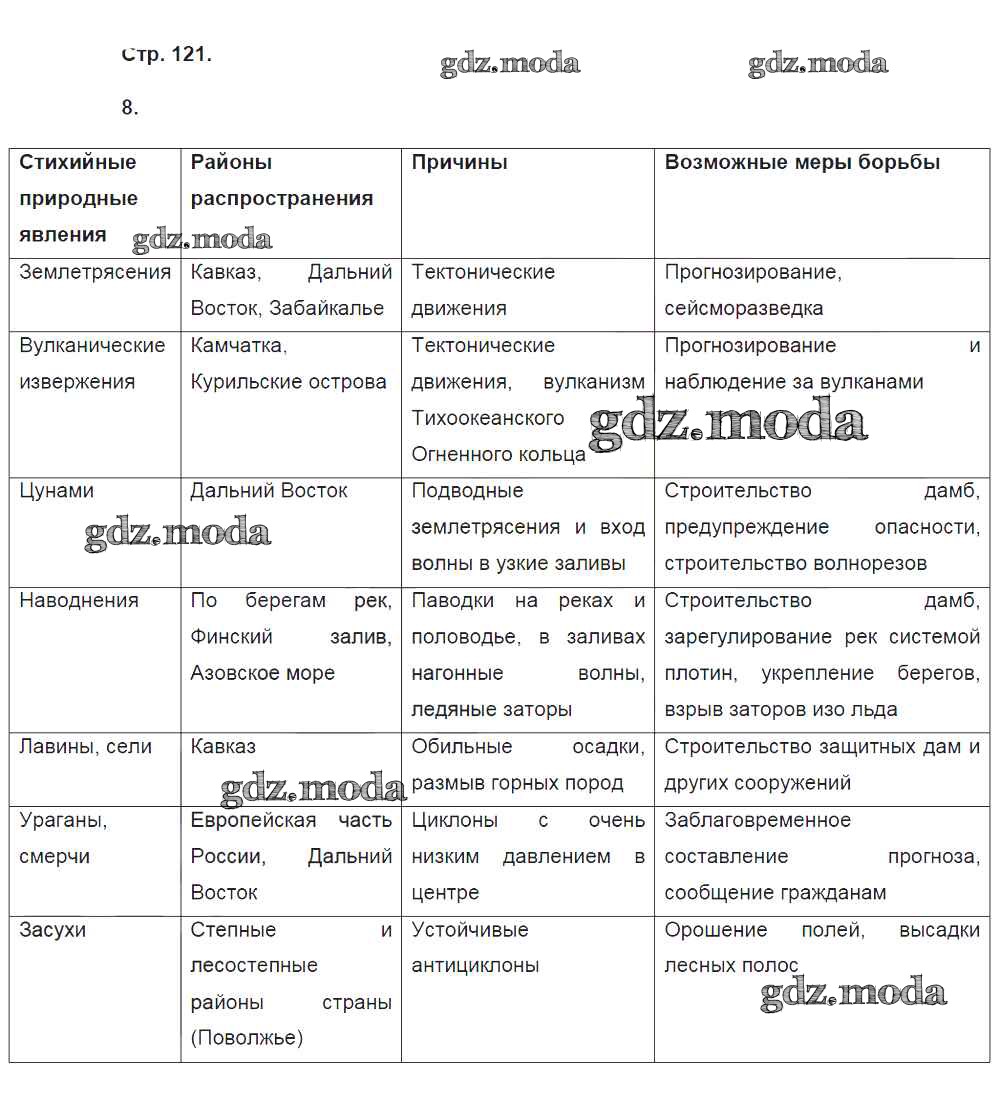 ГДЗ решение к заданию № 121 География 8 класс рабочая тетрадь География России Баринова И.И. Дрофа 2018 ФГОС бесплатно на гдз.мода!