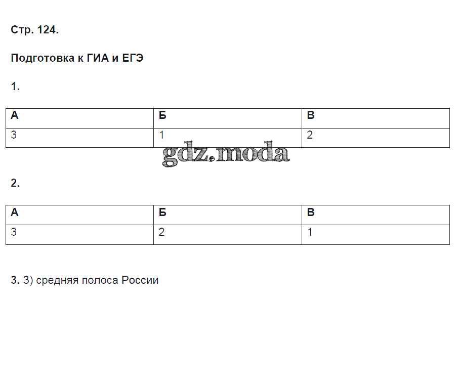 ОТВЕТ на задание № 124 Рабочая тетрадь по Географии 8 класс Баринова УМК